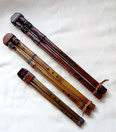 指孔のないドローン管から、指孔が1つ、2つ、3つ・・・とあいた管を2本、3本と束ねるので、様々な組み合わせが生まれます。