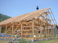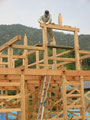 ムク材で、1本の釘も使わず柱や梁は、すべて仕口で組み棟上げは、三又と滑車を使い、たった一人で、建てた木組みの家です。